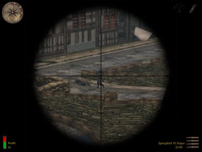 Another source of complaint is the ubiquity and prescience of enemy snipers during some levels. I know: hiding somewhere up high and out of the way is part of what being a sniper is all about, but at times you can’t walk more than two yards without being picked off and it seems the only way to progress is to die several thousand times while trying to spot where the shots are coming from, and then reload from a safe place once you know the answer. I guess that’s just an extension of saving before entering a room full of bad guys, but somehow it feels a little cheap. And while we’re on the topic, it’s sad to report that Allied Assault resorts to similarly underhand tricks to ramp up the difficulty towards the end – respawning enemies and making them incredibly resistant to bullets certainly makes the later levels more challenging, but it’s a pretty lazy way to go about it. Oh, and speaking of lazy, the ending is bollocks too (See THE END for more).