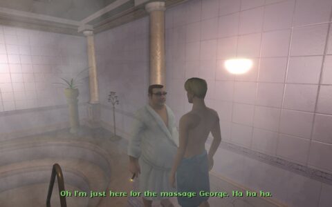At this point I was not having a lot of fun, and started to question the longevity and lasting appeal of the series. Why exactly has a character as oddly uneven as George Stobbart managed to appear in quite so many games? Are we really so interested in his latest adventures? Despite having the same voice actor across the series, George’s personality, and physique, are revised each time we see him. In this game, he looks younger and more physically toned than ever, and, with his offensive outbursts occurring less frequently than usual, he also seems to be more romantically appealing to female characters than ever before. It’s all a far cry from the slightly middle-aged tactlessness of the first game; in some ways, I guess it’s a good thing, but it also means that as a character he’s never really been fully developed. Also, I’m not sure that I really like fad-diet, Converse trainer-wearing, mysteriously-youthful George – he kind of gives me the creeps.