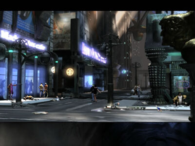 The Longest Journey is the story of April Ryan, an 18 year old girl living in the city of Newport in the year 2200ish. She’s just student going about a quiet unassuming life, hoping to one day be an artist. As events unfold, however, she learns there are in fact two parallel earths out there. Her (and our) own world is Stark, a futuristic land of logic and science. Alongside it is Arcadia, a fantasy land of magic. For millennia the two have existed in a carefully maintained balance, watched over by guardians, but now that balance is threatened. Of course, April learns she has an important part to play in putting things right.