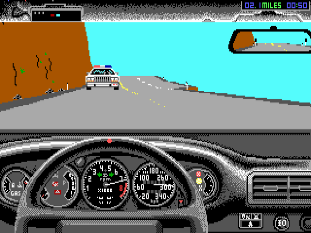Significantly, it moved the cross-country racing genre away from Outrun‘s arcadey stylings, offering a superficially more realistic experience by switching the view to in-car, making the player drive on the right side of the road while avoiding pesky slow-moving traffic and the attentions of the police along the way. With a few nice-looking stills of the car thrown in for good measure (as well as some complicated-looking performance stats), Test Drive wanted people to think it was a proper simulation.