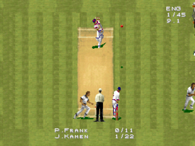 The action is quicker and more responsive than in Super International Cricket, although a switch to a two-button control scheme on PC necessitates some reworking of the SNES mapping. When batting, instead of pressing one of the four SNES face buttons to choose a shot, you choose direction using an on-screen indicator; one of the buttons toggles between shot direction and moving your batsman around the crease, the other executes the shot. Pressing both together launches a slog or aerial shot.