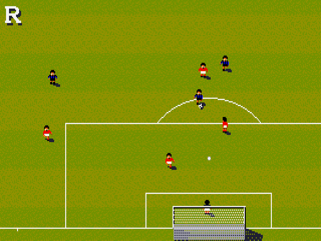 On the pitch, Sensible Soccer is a one button effort, with a tap of that button passing to a nearby player (if one is nearby) and a more hefty stab blasting the ball upfield or at goal. Curl can be applied to longer kicks with appropriate use of the direction control, and, as with Kick Off 2 and other top-down efforts, significant amount of each game involves getting the ball to your strikers for them to curl in a 20 yard shot from the edge of the box.